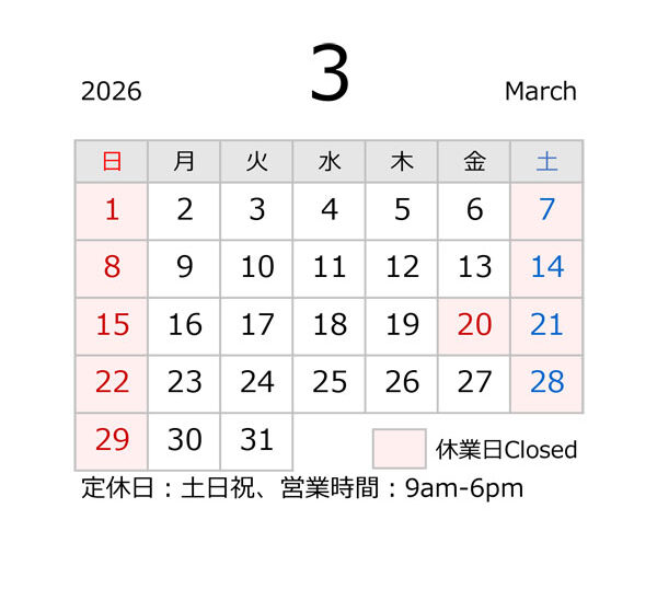家事都合により臨時休業せざるを得ない事がありますので遠方よりご来店の際は事前に営業日確認をお願い申し上げます。 ご不便ご迷惑をおかけいたしますがご理解ご協力の程どうぞよろしくお願い申し上げます。